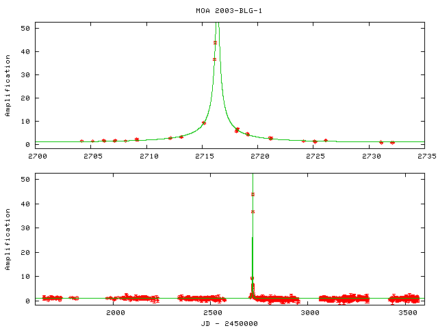 | UT at peak amplification | JD2452716.37 (2003 Mar 17.87) |