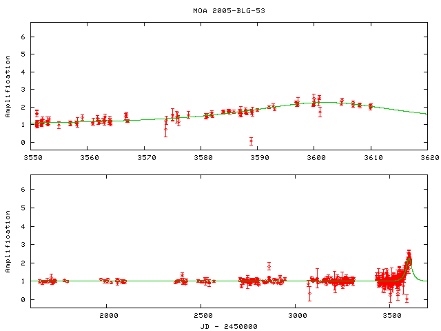 | UT at peak amplification | JD2453602.44 (2005 Aug 19.94) |