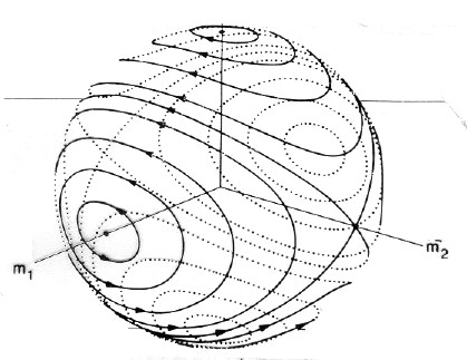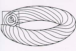 (Left) Sketch of the flow on a family of invariant tori. From V. I. Arnold,