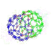 from a movie of two C60 buckyballs (left), colliding (centre) to form