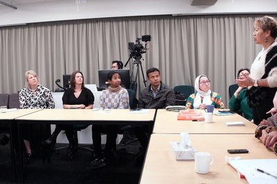 Minister Marama Davidson (front row, second from the right) met with community advisory groups to discuss family and sexual violence prevention.