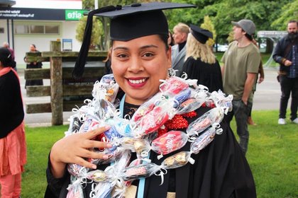 “I am grateful to have an awesome God where all my blessings are from. I’m thankful for the Tongan community here in Palmerston North and the Fale Pasifika Team for all the love, from food provisions to emotional encouragement to proof reading assignments. I cannot thank them enough. Also, to my humble and loving husband for always supporting me 24/7.”