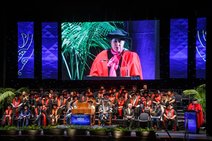 Her Excellency, the Right Honourable Professor Dame Cynthia (Cindy) Kiro GNZM QSO with her Honorary Doctorate.