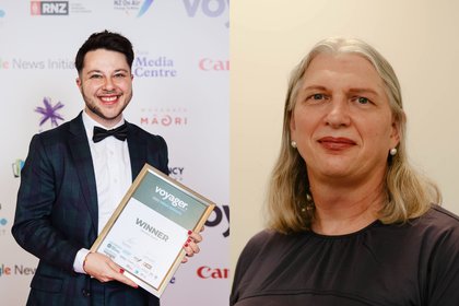 Massey journalism graduates Felix Desmarais and Jem Traylen were two of six Massey graduates to win awards.