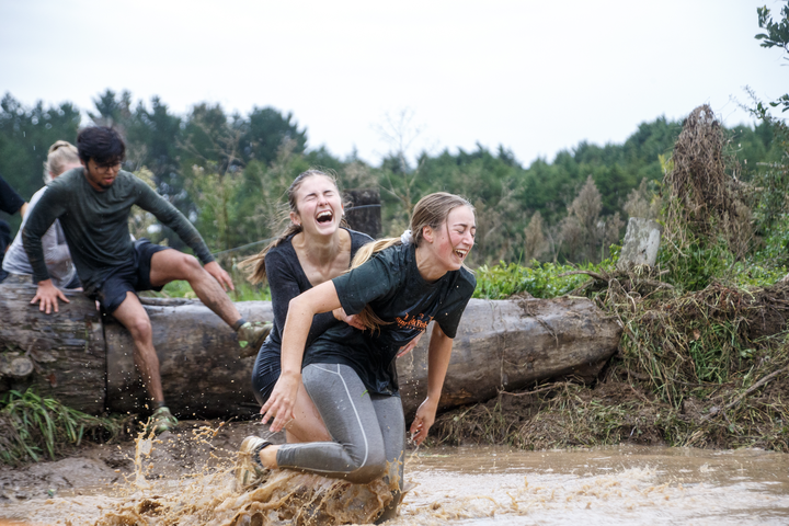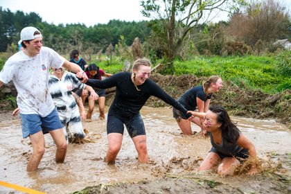 Up against cold and rainy conditions, 65 staff and students from the Manawatū campus grabbed the chance to take a break from their office and study to have some outdoor fun. They were put through their paces through several obstacles including a waterslide down the side hill at the athletics track, a swamp and Turitea Stream crossing, a mud pit and a cargo net crawl, with several participants taking the opportunity to initiate a mud-throwing fight.