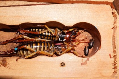 A study by Massey University biologists, which was recently published in the New Zealand Journal of Zoology, found that half of the tree wētā hiding inside refuge-boxes during the day returned home to the same box each night.