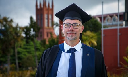 Master of International Security graduate Senior Sergeant Mark Currin found inspiration in his father's military career in the Royal New Zealand Navy. This ignited a determination to safeguard and fortify the safety and security of Aotearoa New Zealand.
