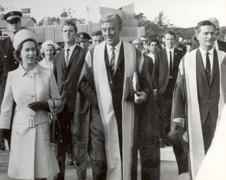 Professor Emeritus Robert Anderson was Student President at the time and went on to have a career spanning nearly 50 years at Massey. One of his duties was chaperoning Queen Elizabeth II on the visit, which he remembers fondly.