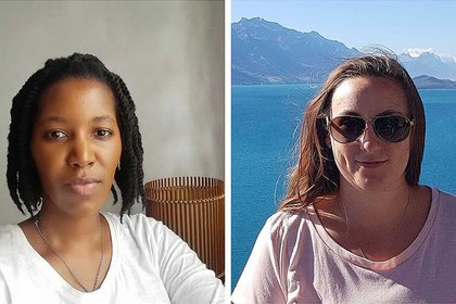 Three-minute Thesis winner Roxanne Hawi (left) and Visualise your Thesis winner Stephanie Coursey.