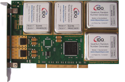 The Quantis Random Number Generator is not a parallel computing device but is used in conjunction with parallel devices. This device makes use of a simple quantum optical effect to generate a truly random sequence of bits. Although slower than some pseudo-random number generators, this sequence has the advantage of being truly random. It can be used to either seed/re-seed parallel pseudo-random number generators or reduce load off parallel devices computing simulations. The Quantis card owned by the CPC is hosted on a PCI slot and can produce random numbers at a rate of 16 Mbits/second. |