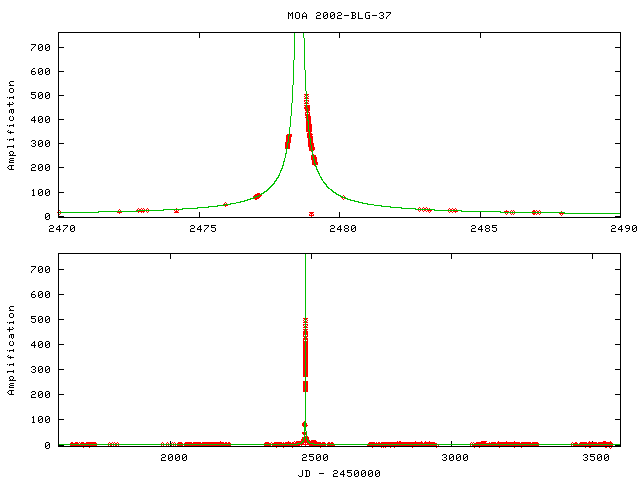 | UT at peak amplification | JD2452478.57 (2002 Jul 23.07) |
