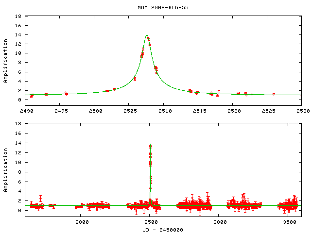 | UT at peak amplification | JD2452507.62 (2002 Aug 21.12) |