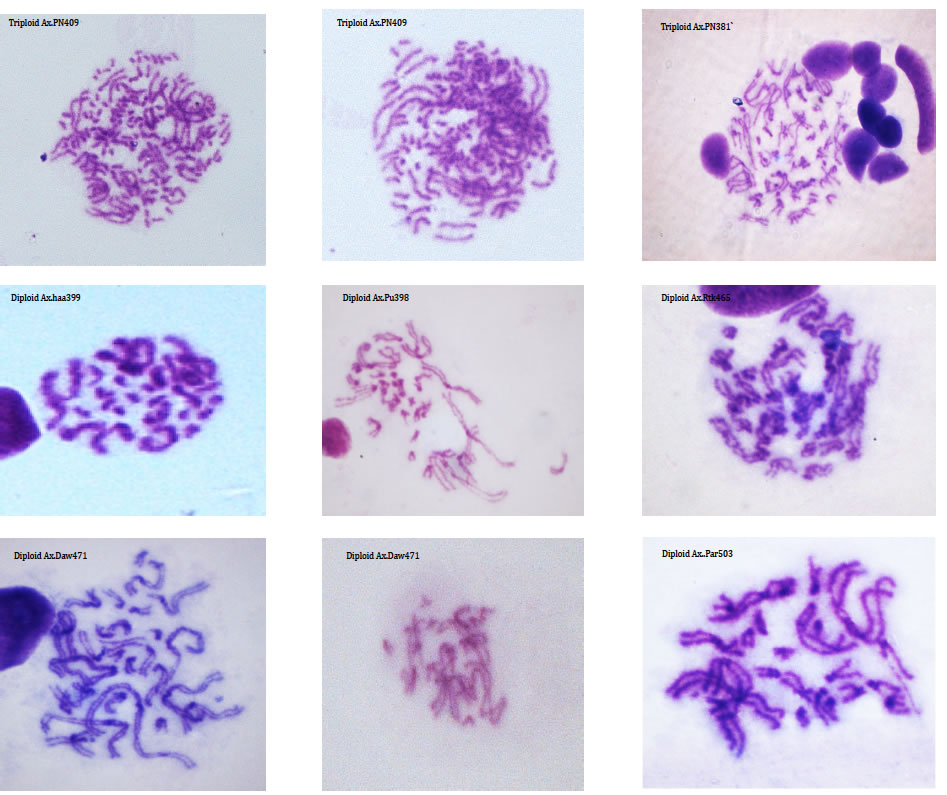 Although many species have a characteristic genome size and karyotypes, there is a good deal of variation within some lineages. For example the Auckland tree weta, Hemideina thoracica, has at least eight different chromosome races, each with its own distinctive karyotype (Morgan-Richards 1997). Intraspecific karyotype variation is not concordant with allozyme variation in the Auckland tree weta of New Zealand. We use plain staining of chromosomes from insects (using Geimsa) to document chromosome rearrangements and study hybrid zones (Morgan-Richards et al. 2001) and understand changes in ploidy (Myers et al. 2012).