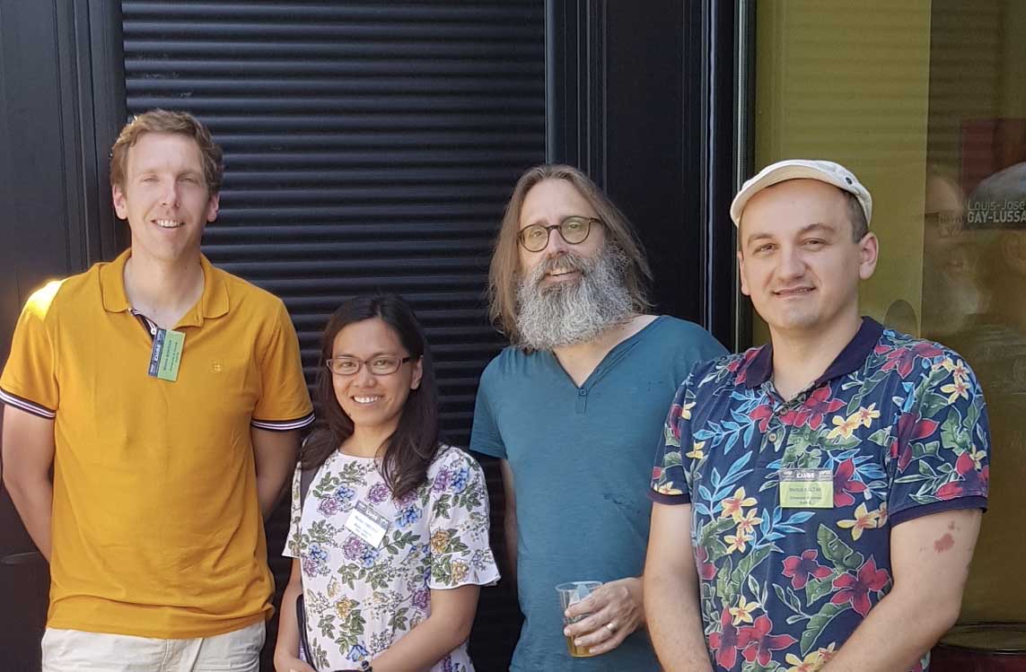 Marilou Raduban attended the Vienna Ab Initio Simulation Package (VASP) Training School from 26-29 June 2019 at the Ecole Nationale Superieure de Chimie de Rennes (ENSCR) in Rennes, France. VASP is one of the most popular computer programs for atomic-scale materials modelling, such as electronic structure calculations and quantum-mechanical molecular dynamics, from first principles. This four-day training school featured lectures on density functional calculations using VASP. It was further enhanced by hands-on tutorials and exercises on the implementation of the package. The school provided the unique opportunity for Marilou to learn the use, power, and limitations of the package with the tutoring of the authors and developers of the code. Picture on the left shows Marilou with the VASP developers and lecturers (L-R): Dr. Menno Bokdam, Dr. Martijn Marsman, and Dr. Merzuk Kaltak from the University of Vienna.
