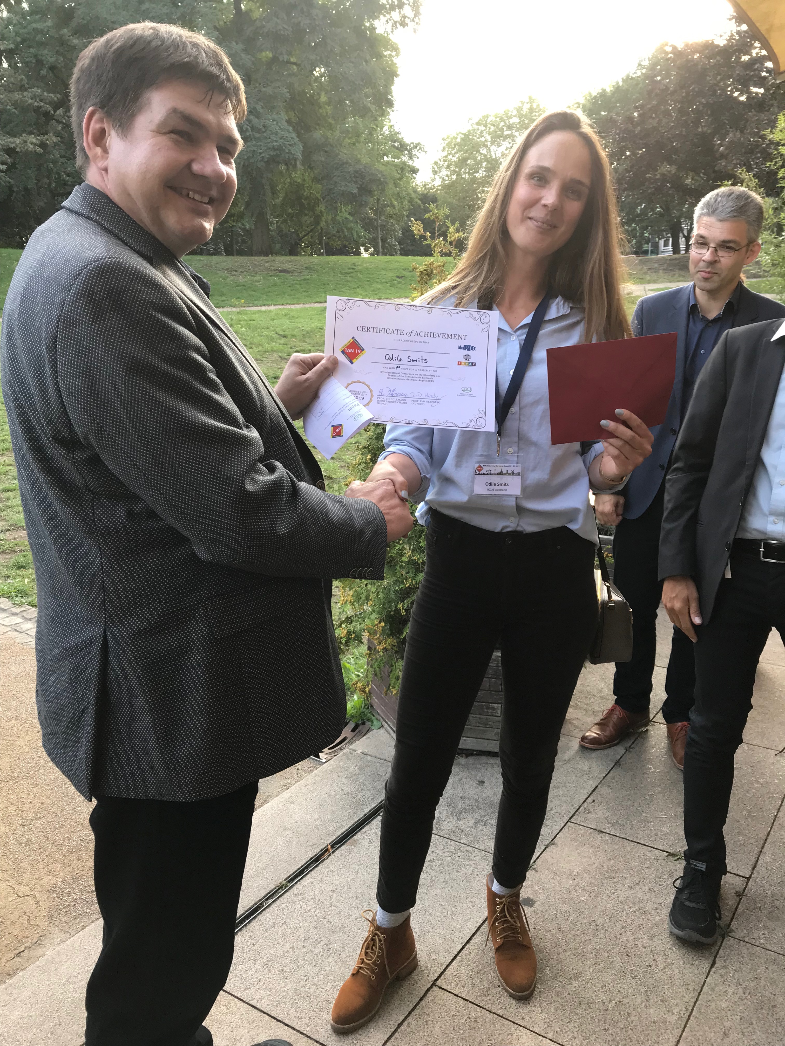 29 August 2019: Odile Smits receives first prize for the best posters award at the TAN19 conference in Wilhelmshaven (Germany).